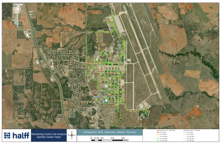 Halff’s partnership in this project for Sheppard AFB helped them prioritize their next corrective actions, as the team recommended immediate structural repairs for high-priority sanitary sewer pipes with a planning-level cost estimate of $3.1 million for full-pipe replacements and $1.4 million for specific rehabilitation.